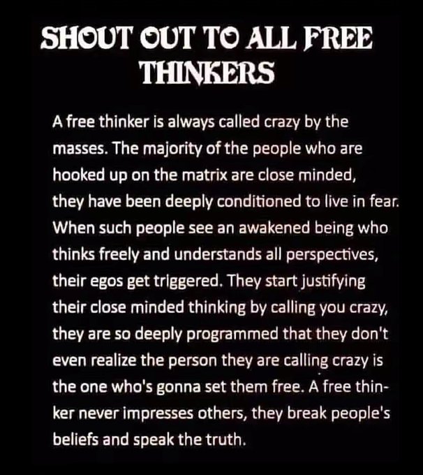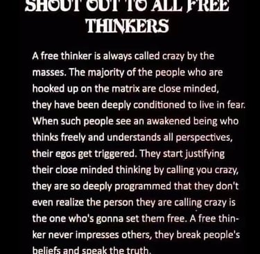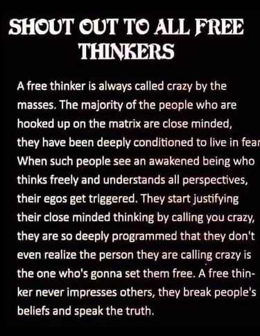 Free thinkers can start multiple profitable businesses in their lives. Free thinkers embrace every new day as an adventure. Free thinkers follow their dreams. I'm in a new city with 100s of like minded free thinkers to hook up with by just walking to one of dozens of meetups every week.