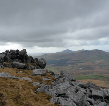 Mount Snowden is to the left but behind me, Porthmadog is on the coastline in front but more to the right of me.