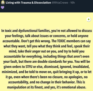 Ask a victim of a narcissist a question like, "how long did you expect me to put up with his abuse after over three decades of it ?" or "when was the last time he/she said something nice about me?"
